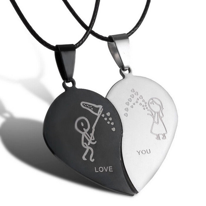 Black Cord Necklace Stainless Steel Engrave Love You Pendants Necklace Jewelry 2PCS Couple Broken Heart Choker Necklaces SM6