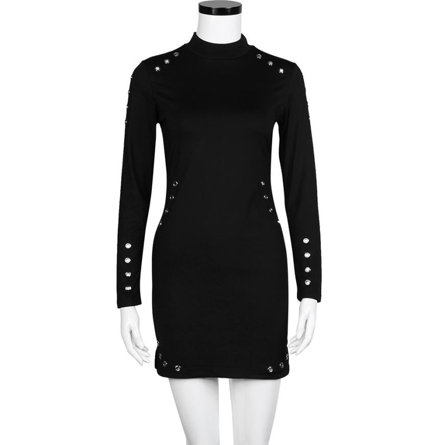 Black Dress 3XL Plus Size Sexy Hollow Out Long Sleeve Mini Dress Turtleneck Slim Autumn Club Dress 2016 Moda Feminina#A11 SM6