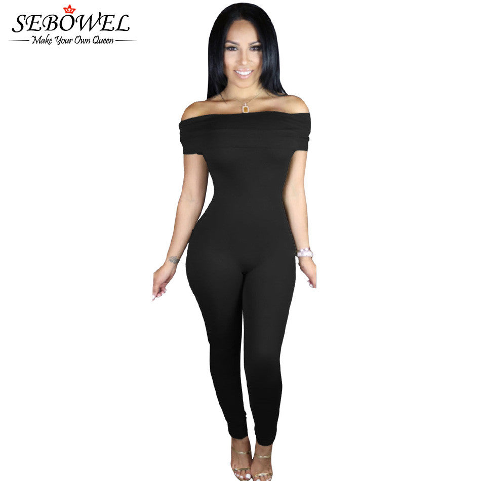 Black Off Shoulder Jumpsuit Long Pants Overalls For Rompers Casual Bodycon Jumpsuits 64052 SM6