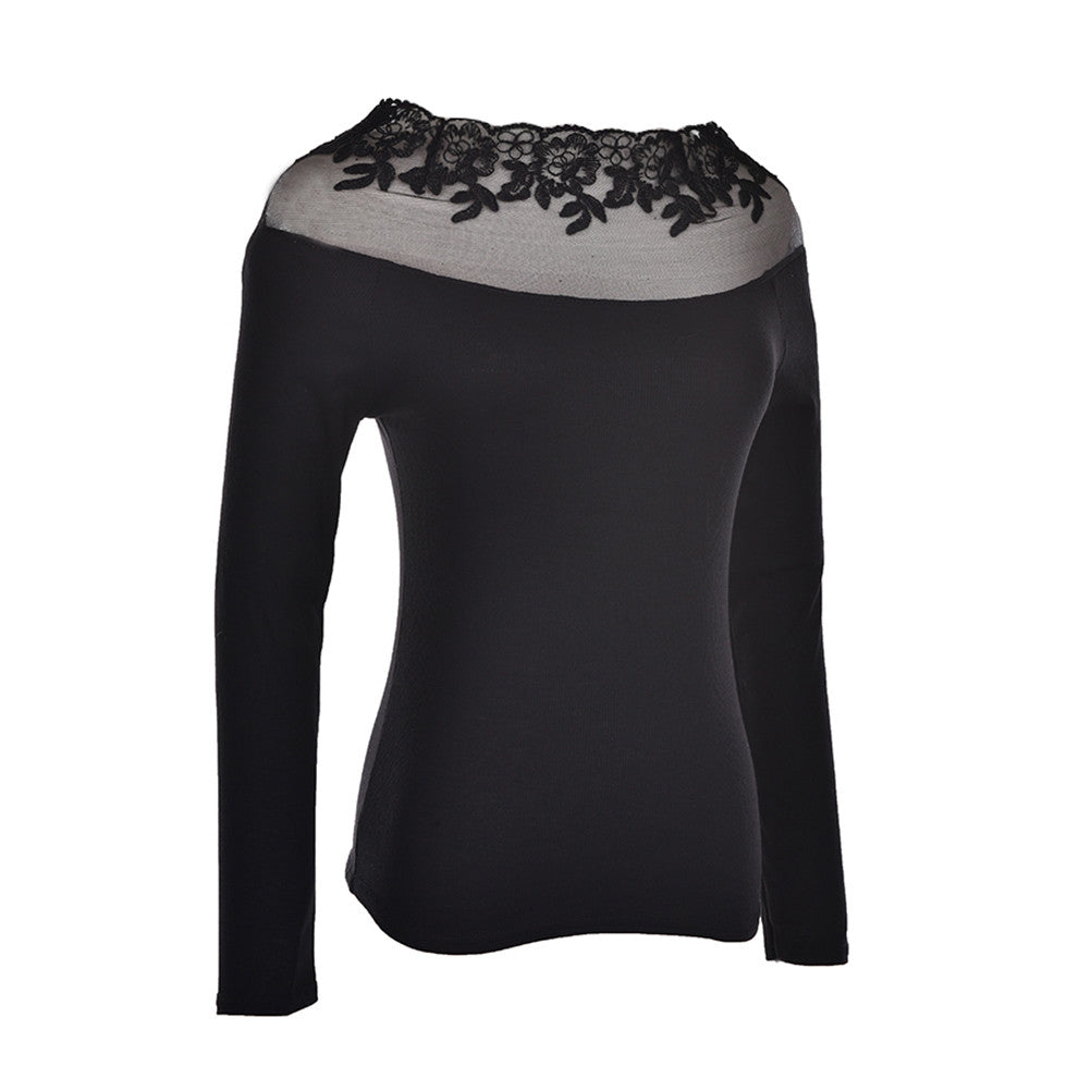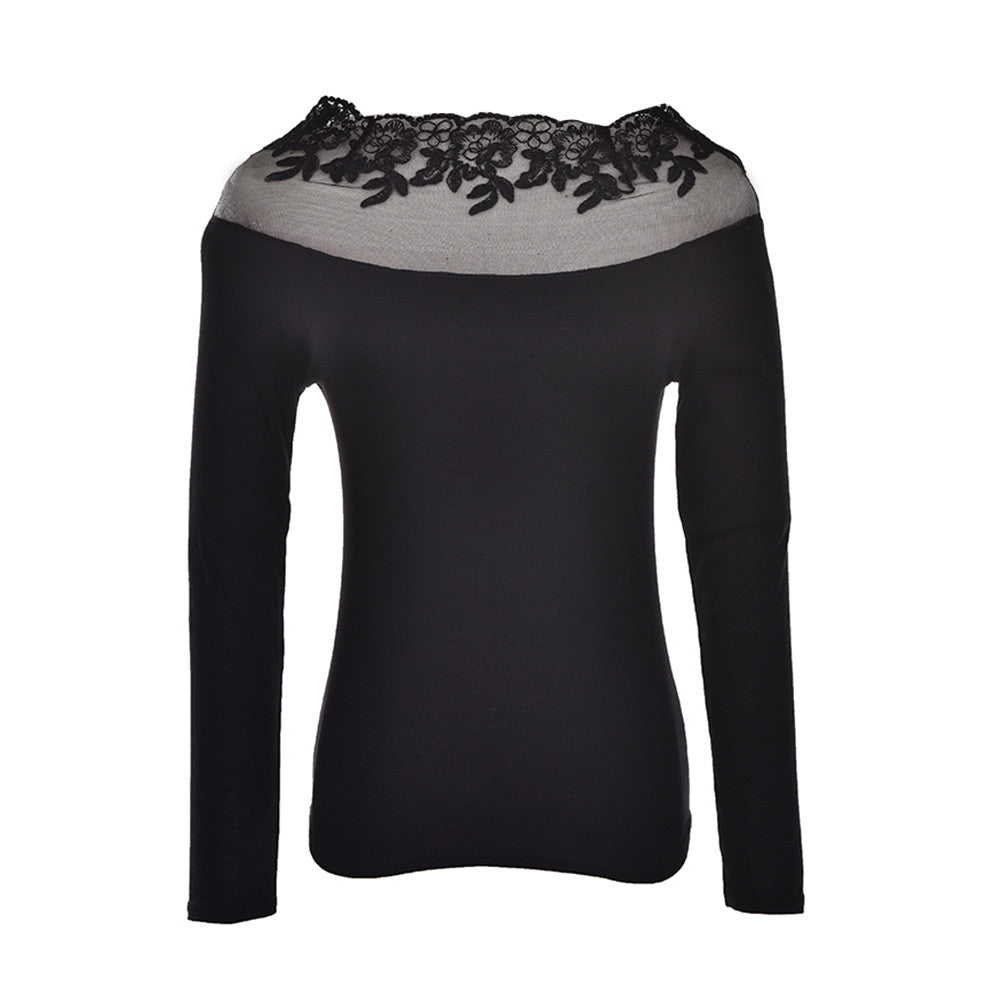 Black   white striped blouse Knitted women tops lace floral embroidery shirts long sleeve knitwear Women Formal Tops SM6