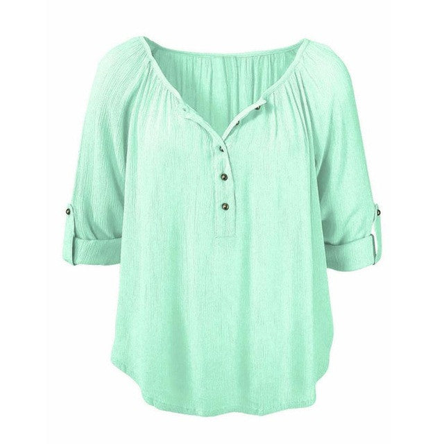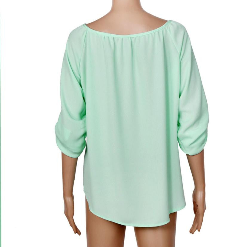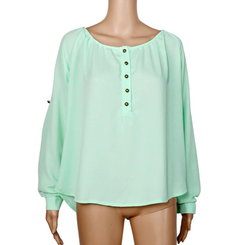 Blouse Women Fresh Mint Greed Long Sleeve Shirts Tops Chiffon Blouse Loose Casual Ladies Blouses Roupa Feminina#B805 SM6