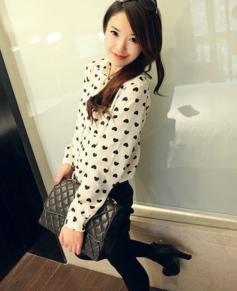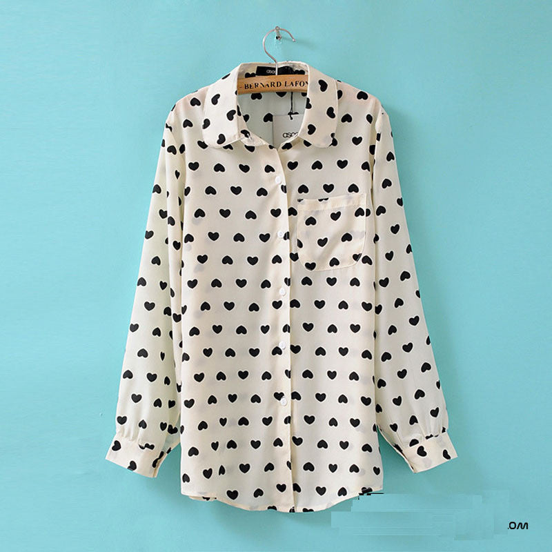 Blusas Feminina Fashion 2016 New Women Chiffon Blouses Lapel Collar LongSleeve Love Heart Print Blouse Shirts Sweet Casual Tops SM6
