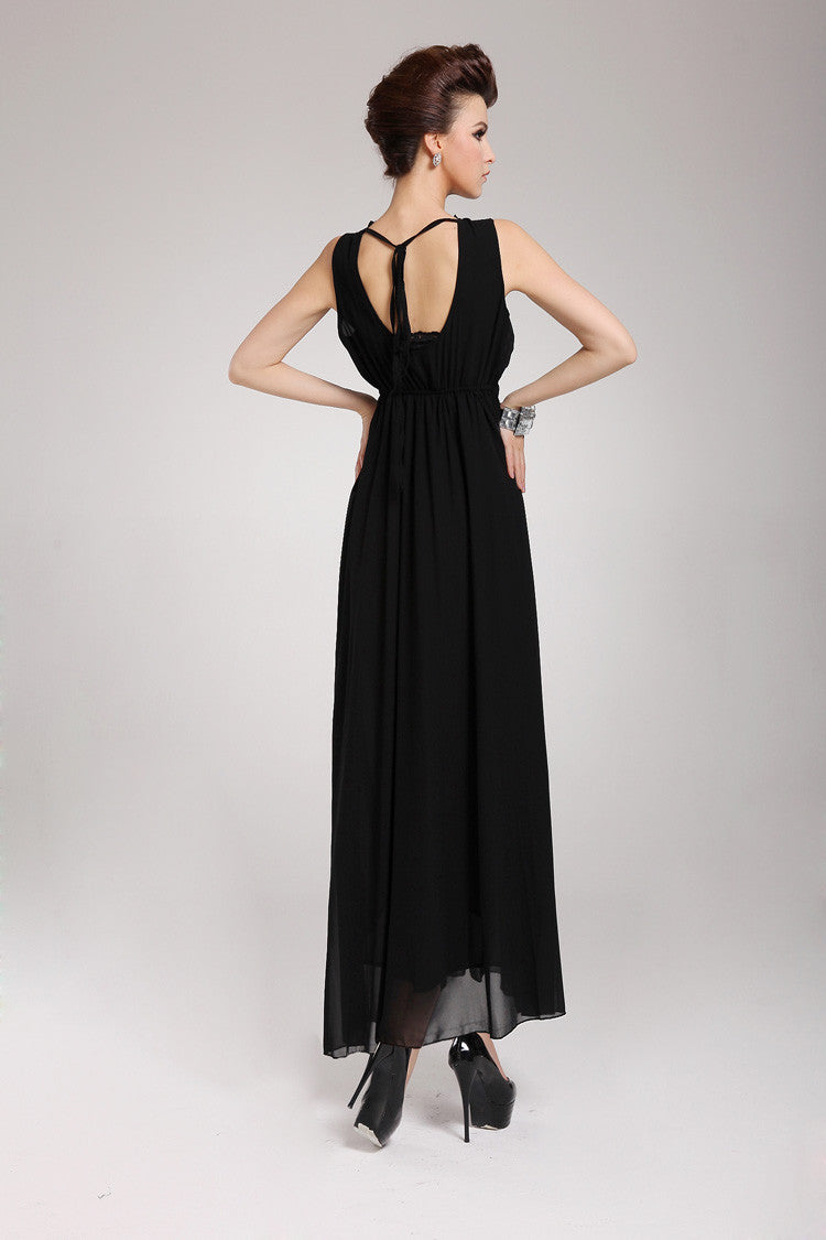 Bohemian Dress Women's Beach Dress Chiffon Split Halter Neck Backless Long Maxi Dress Black Vestidos De Festa SM6