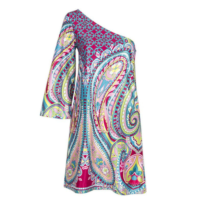 Bohemian Elegant Dress One Shoulder Slash Neck Beach Ropa Mujer Sexy Vestidos Women Dress H34 SM6