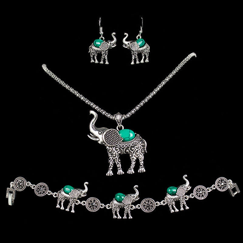 Bohemian Style Women Beautiful Elephant Jewelry Set Include Necklace Earrings Bracelet SM6