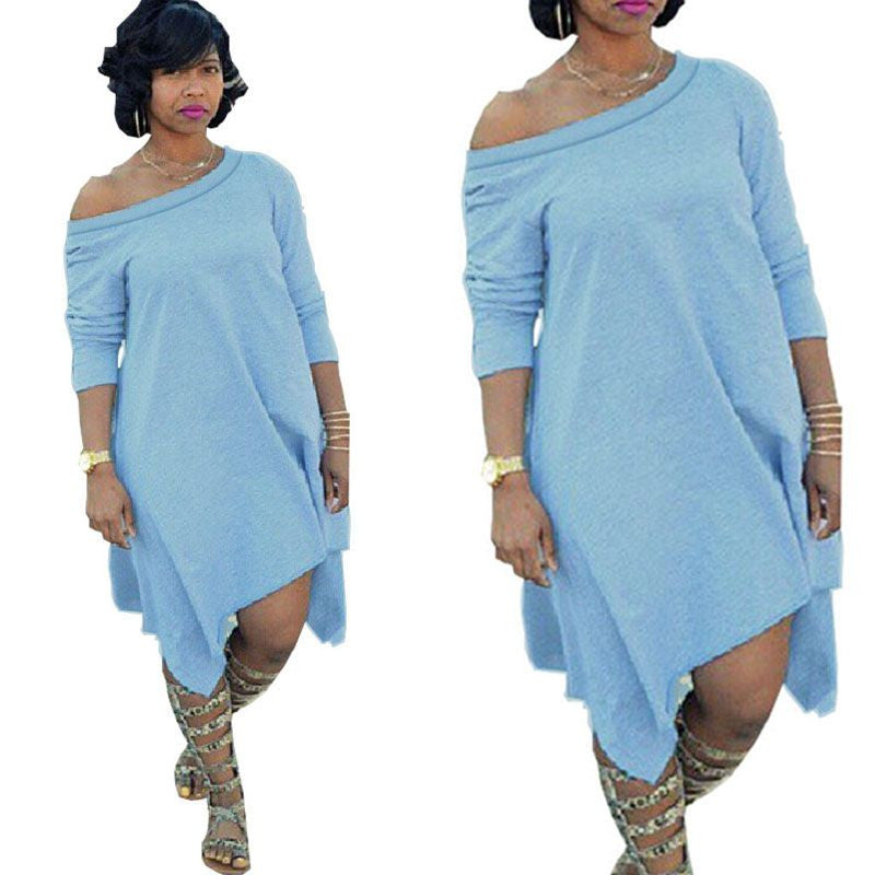 Boho Dress Sexy Women Oblique Irregular Loose dress Beach Dresses L4 SM6