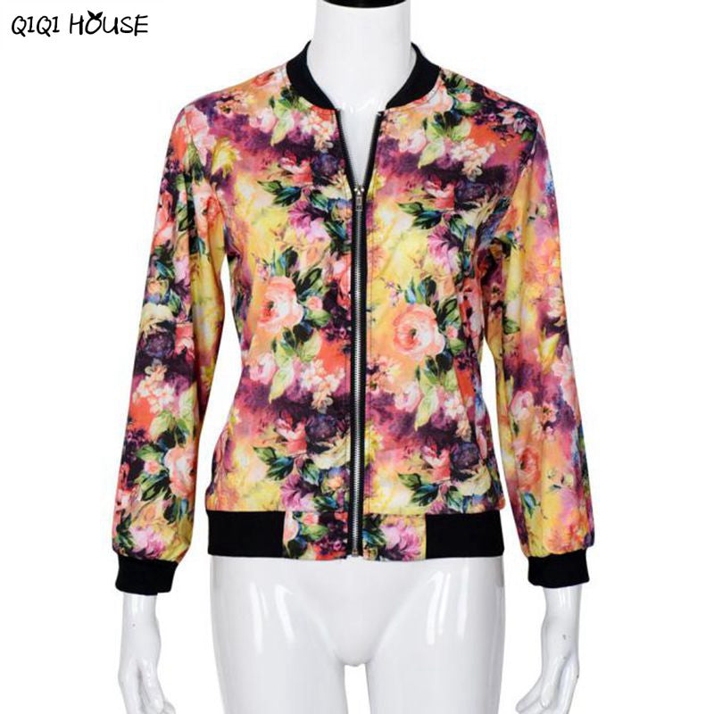 Bomber Jacket Long Sleeves Baseball Jacket Autumn Coat 2017 Flower Printing Fashion Leisure Women Stand Collar Blusas Mujer#B813 SM6