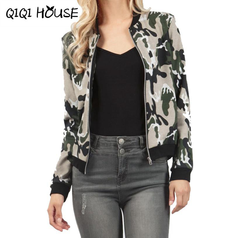 Bomber Jacket Women 2016 Camouflage Outwear Coat Casual Long Sleeve Autumn Jacket Woman Bomber Femme#C822 SM6