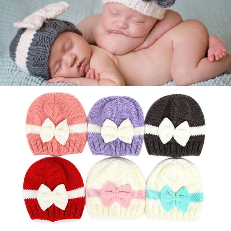 born Baby Kids Girls Boys Lovely Bowknot Knitted Crochet Cap Warm Hat Pography Props Caps SM6