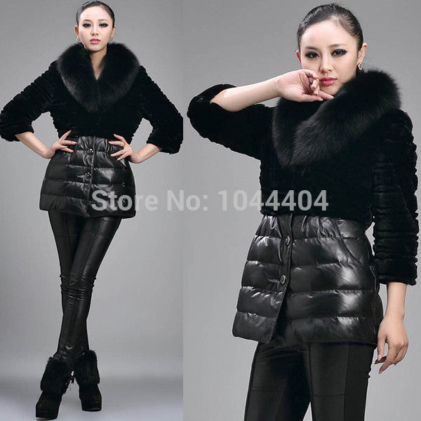 Brand newLuxury Women Jacket Fox Faux Fur Leather Outerwear Long Sleeve Coat andSM6