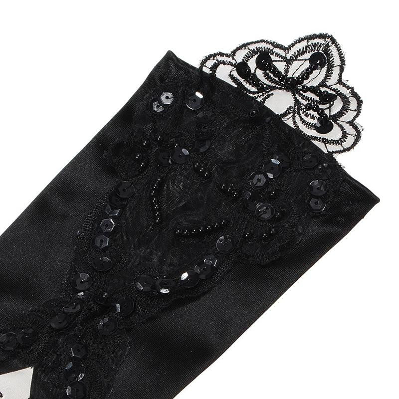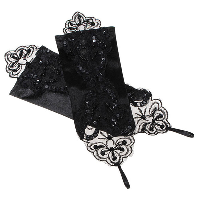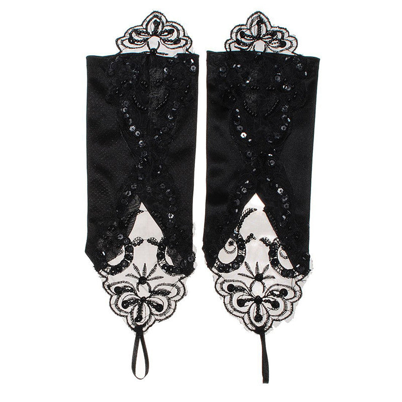 bride gloves beaded lace gloves hook finger gloves short gloves Black SM6