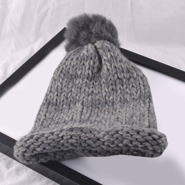Cap Women Knitted Wooling Solid Cap Pompon Ball Hats for Women Warm Braided Beanie Hat Cap Female #1129 SM6