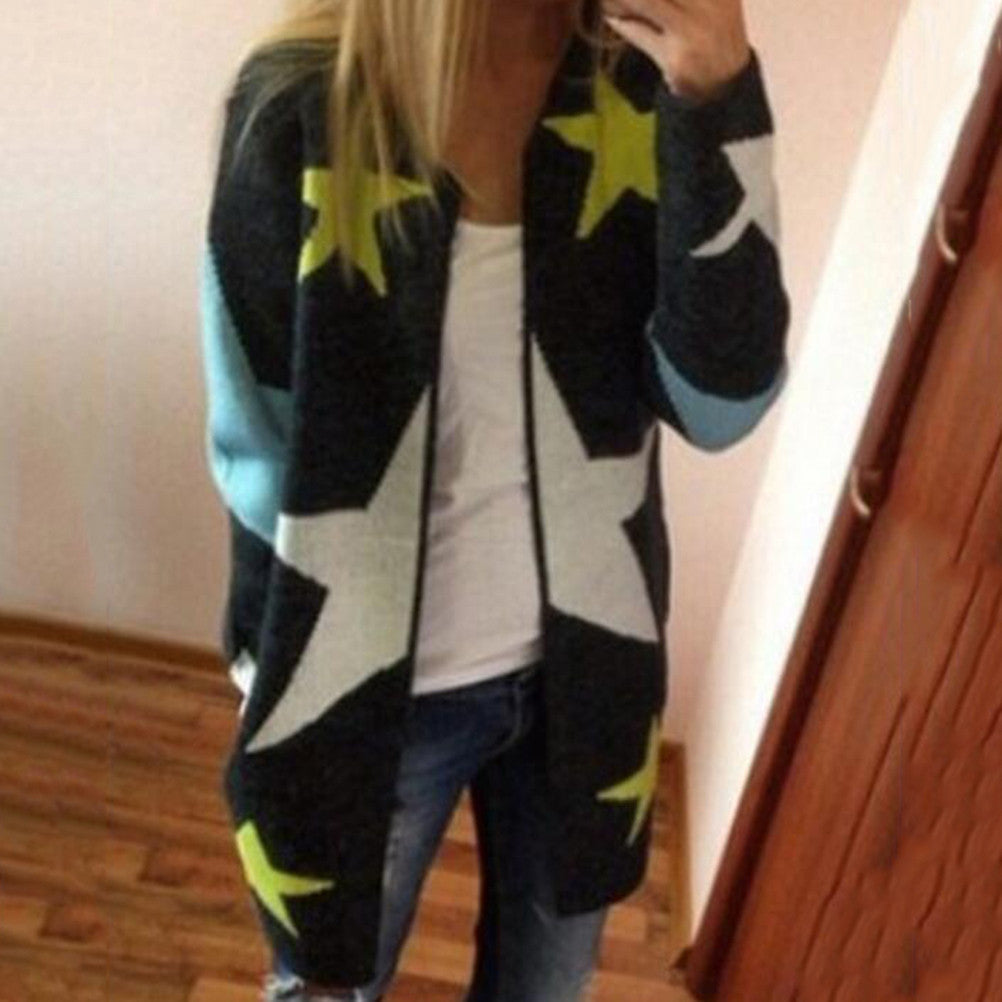 Cardigans Stars Pattern Print Casual Women Long Sweaters Loose Warm Knitted Cardigan Long Sleeve Warm Outwear SM6