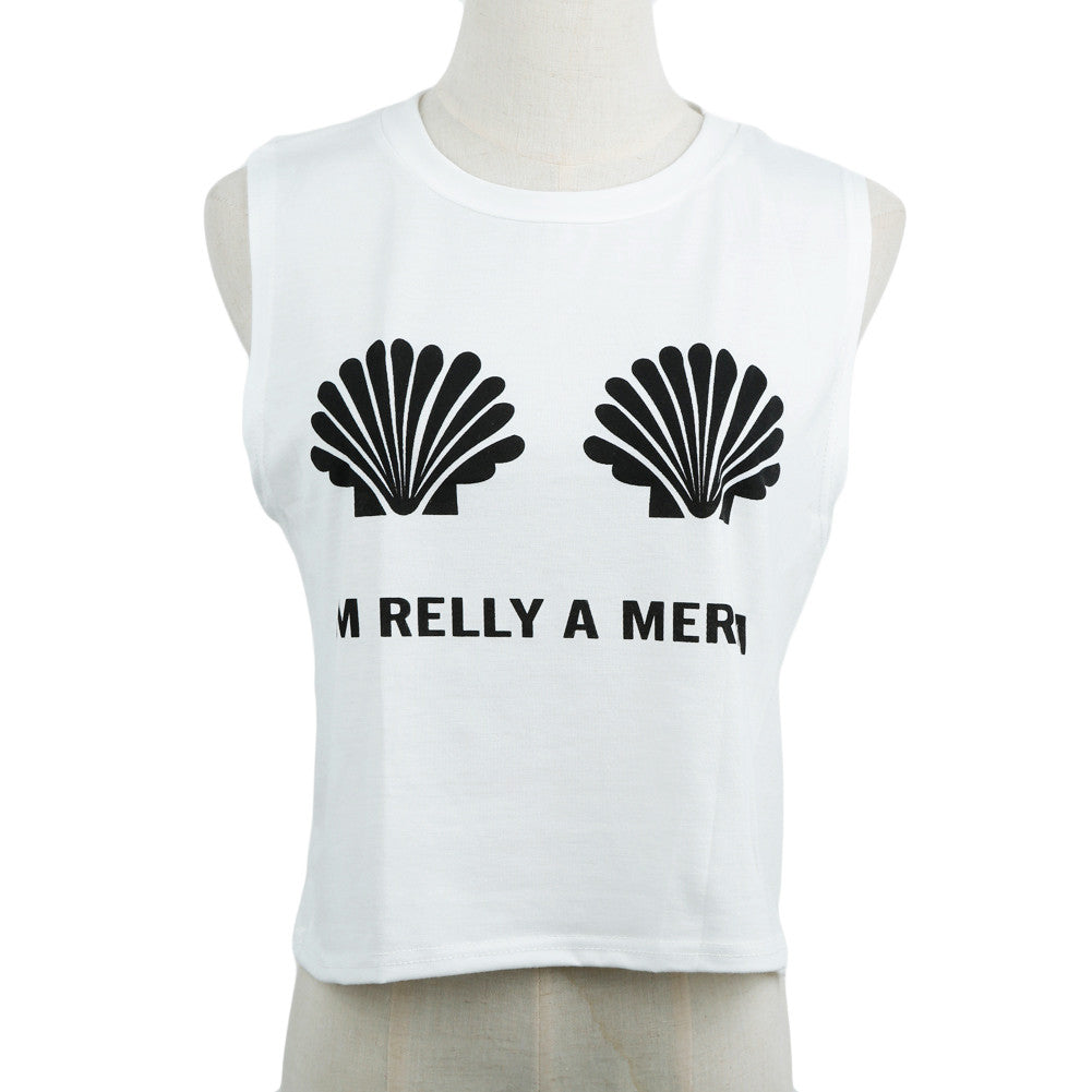 Casual Cropped Women Tops Ultrashort Tank Top Women Seashells Print O Neck Sleeveless Vest Tee Shirt Blusas SM6