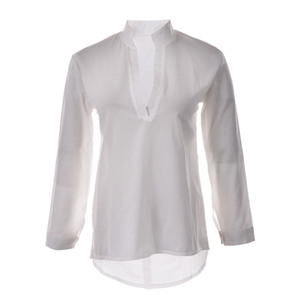 Casual White Black Women Blouse Ladies Solid Elegant V-neck Blouses Long Sleeve OL Office Shirt Plus Size SM6
