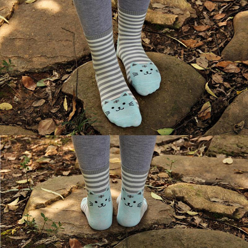 Cat Footprints Cute Cotton Socks Floor meias Women Animals Style Cat Striped Cartoon Sock SM6