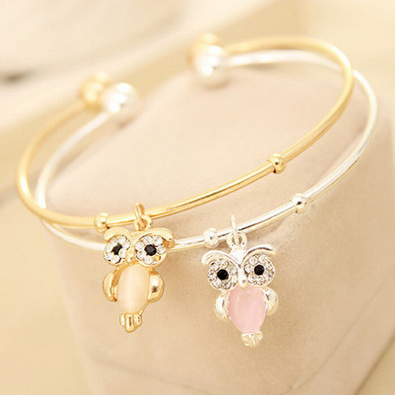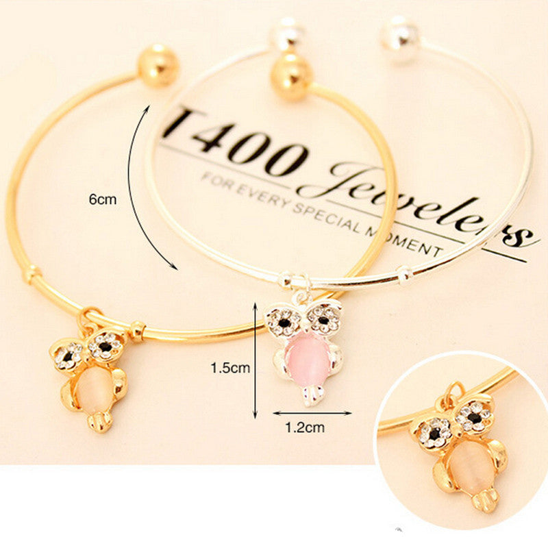 Chic Gold Plated Rhinestone Owl Cuff Bracelets Bangles for Women Lady Girl Women Jewelry Owl Bangles Bracelets for Women SM6