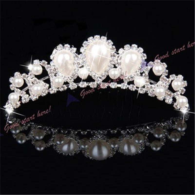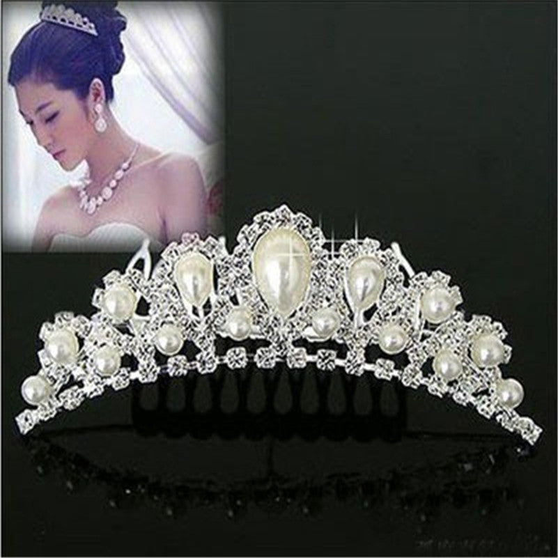 Chic Women Elegant Pearl Rhinestone inlay Crown Tiara Hair Comb Jewelry LKT0004 SM6