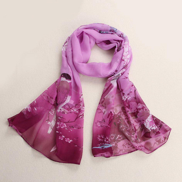 Chiffon Shawl Women Scarves Printed Birds Soft Chiffon Hijab Shawls And Scarves Ponchos Mujer 2016#A11 SM6