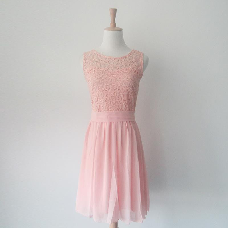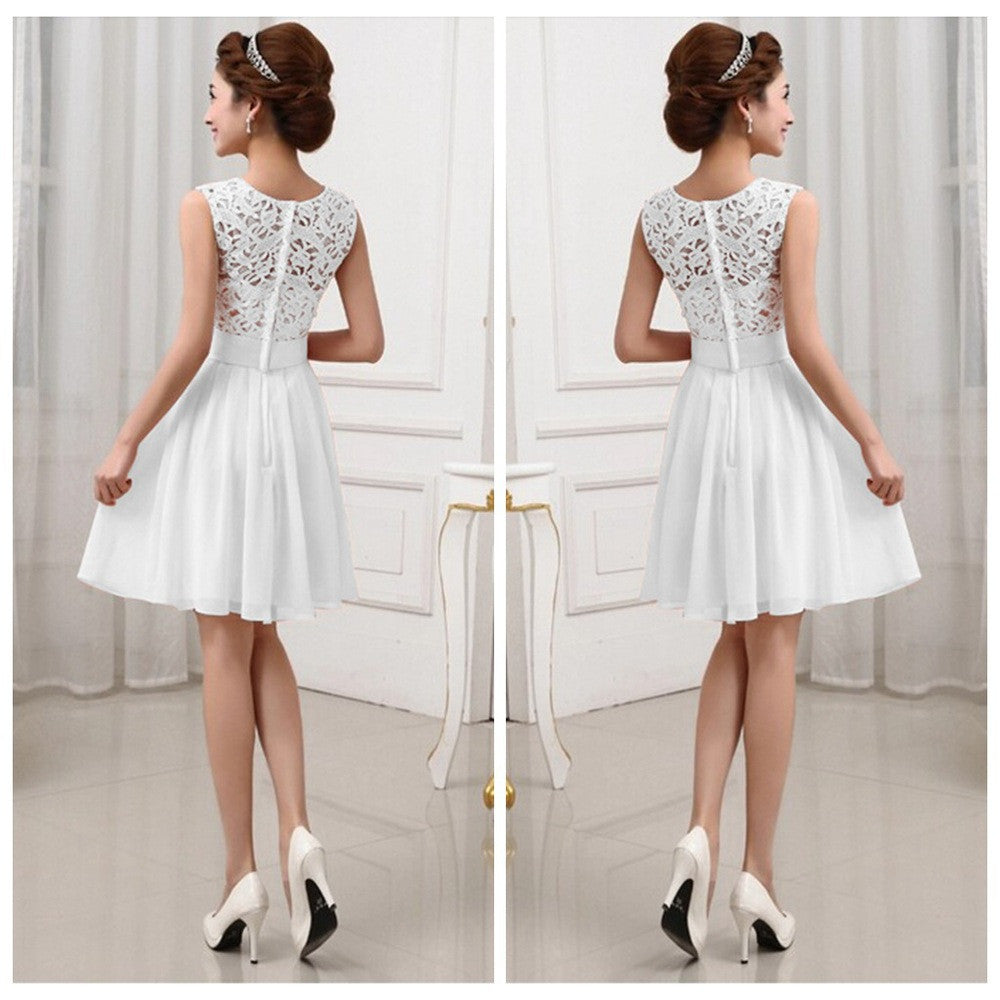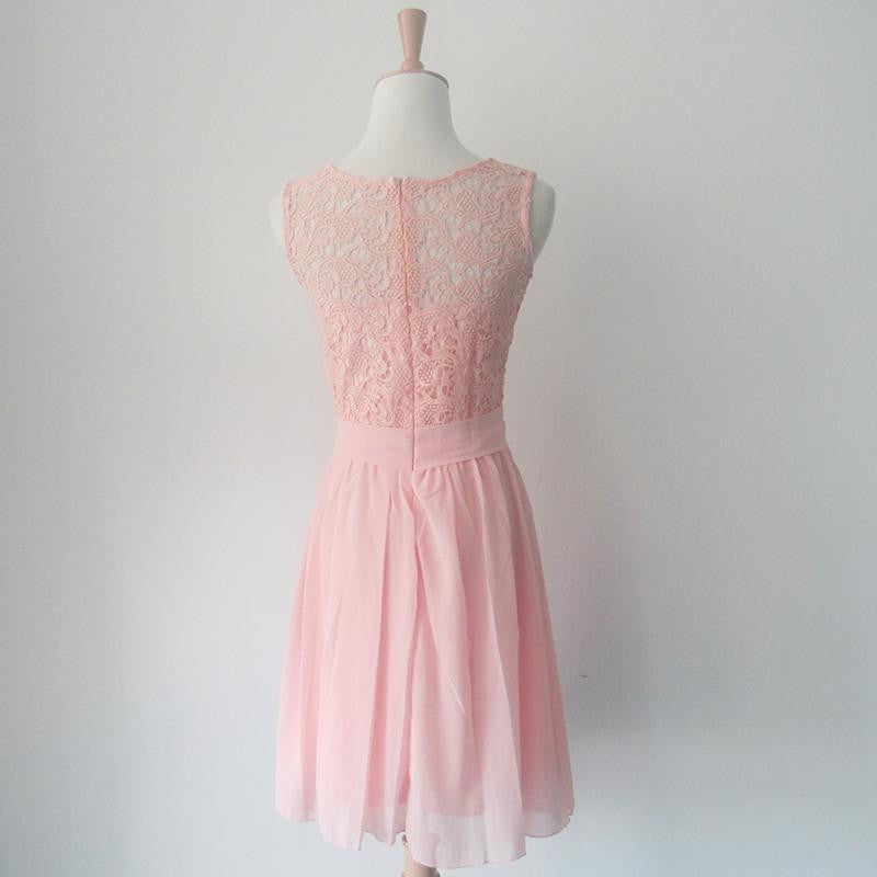 Chiffon  Style Dress Black Lace Formal Dress Sleeveless Knee Length Party Dresses Elegant  Back Zipper SM6