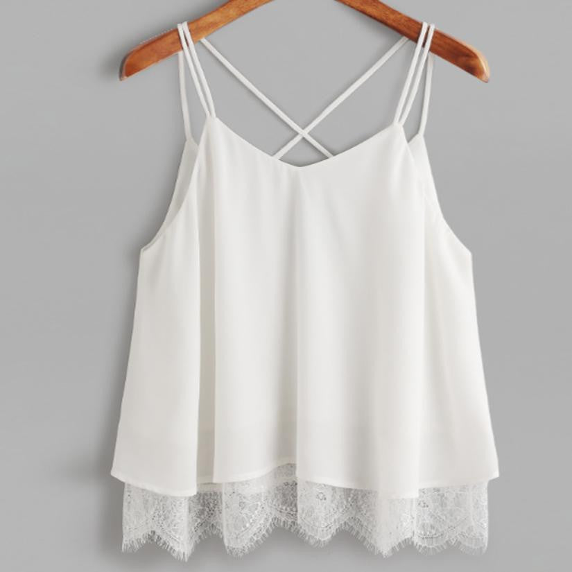 Chiffon Woman Vest Lace Strap Top Sutia Suspenders Short Crop Tops For Women Summer Beach Sleeveless Tank Chalecos#121 SM6