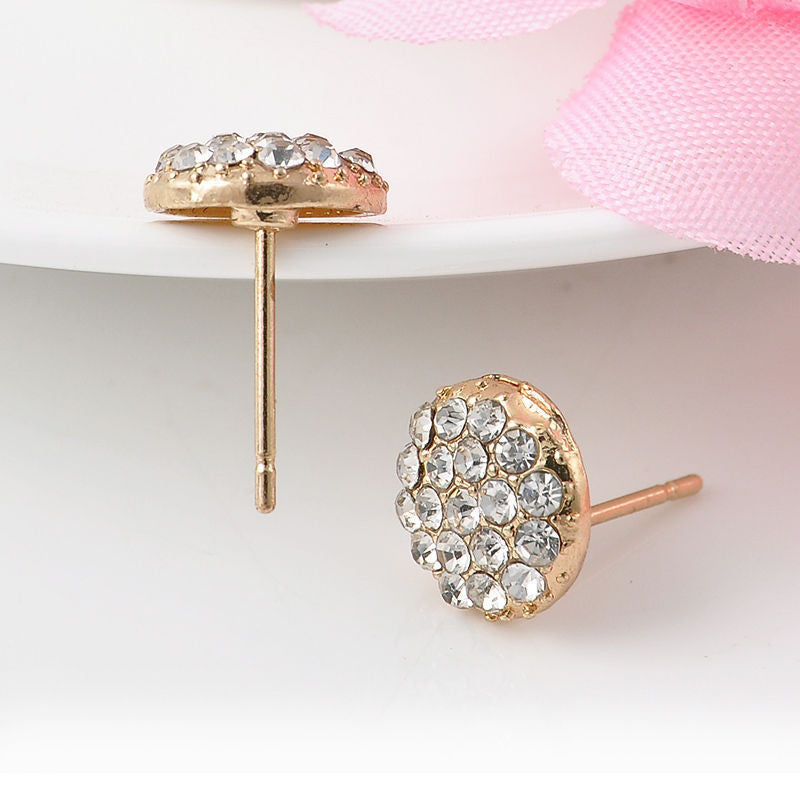 Circle Rhinestone Gold Ear Clip Women Jewelry Elegant Women Crystal Stud Earrings SM6
