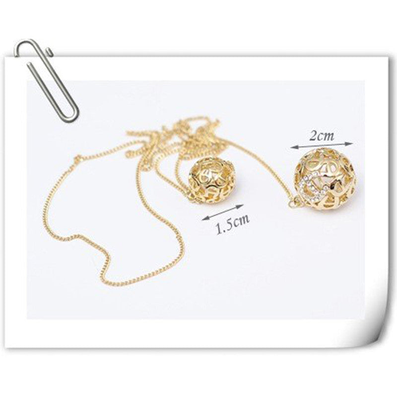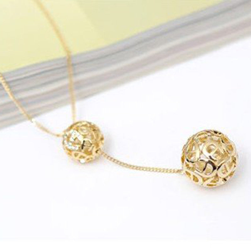 Classic Crystal Hollow Out Two Ball Rhinestone a Long Section of High Texture Flash Spher 18K Gold Plated Necklace SM6