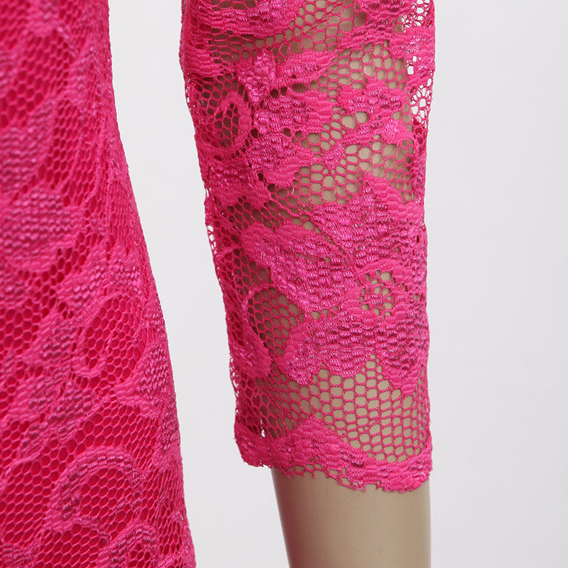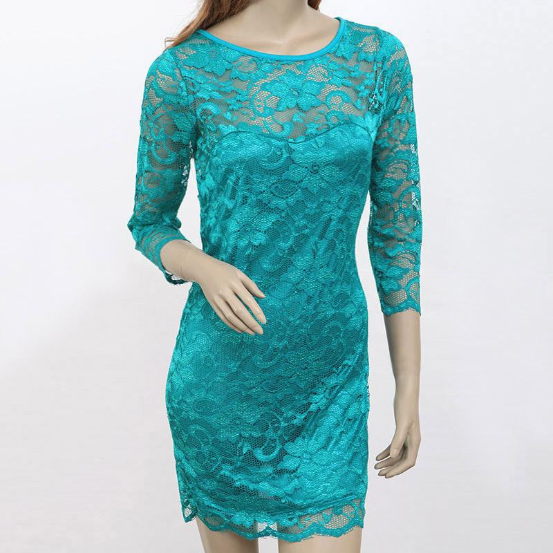 Clearance Products Ladies Mini Lace Dresses Sexy Rose 34 Sleeve Hollow Out Round Neck Short Women Dress SM6