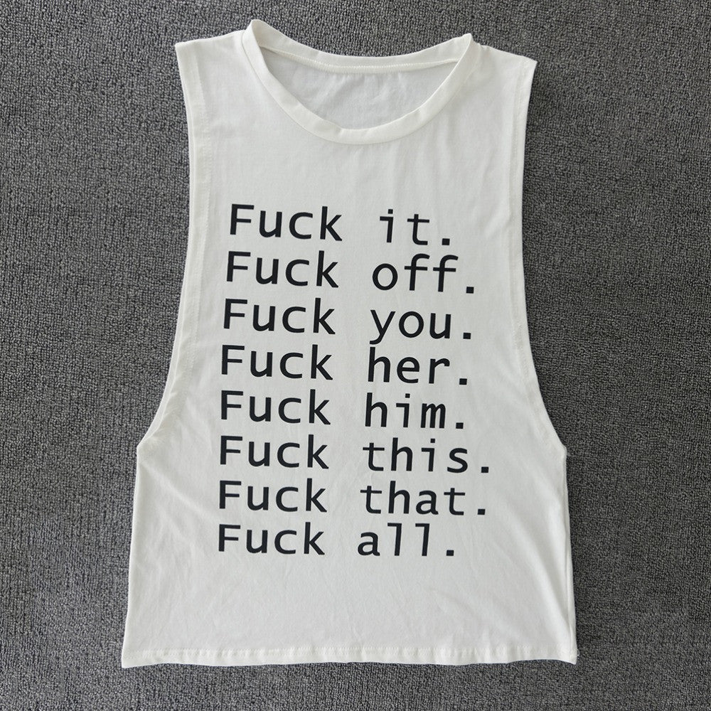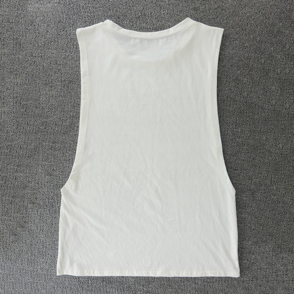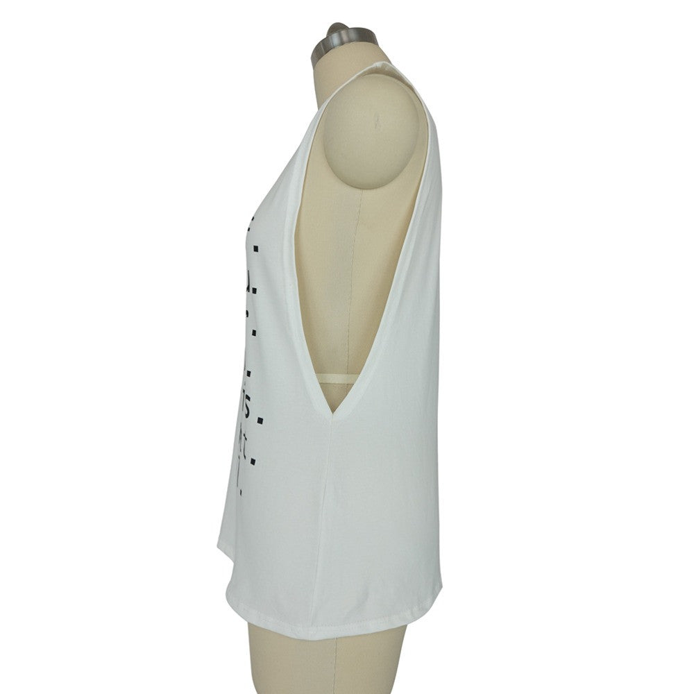 Cool Women Letter T-Shirt White Printing Sleeveless Sweatshirt O-Neck Femme Vogue T-Shirt SM6