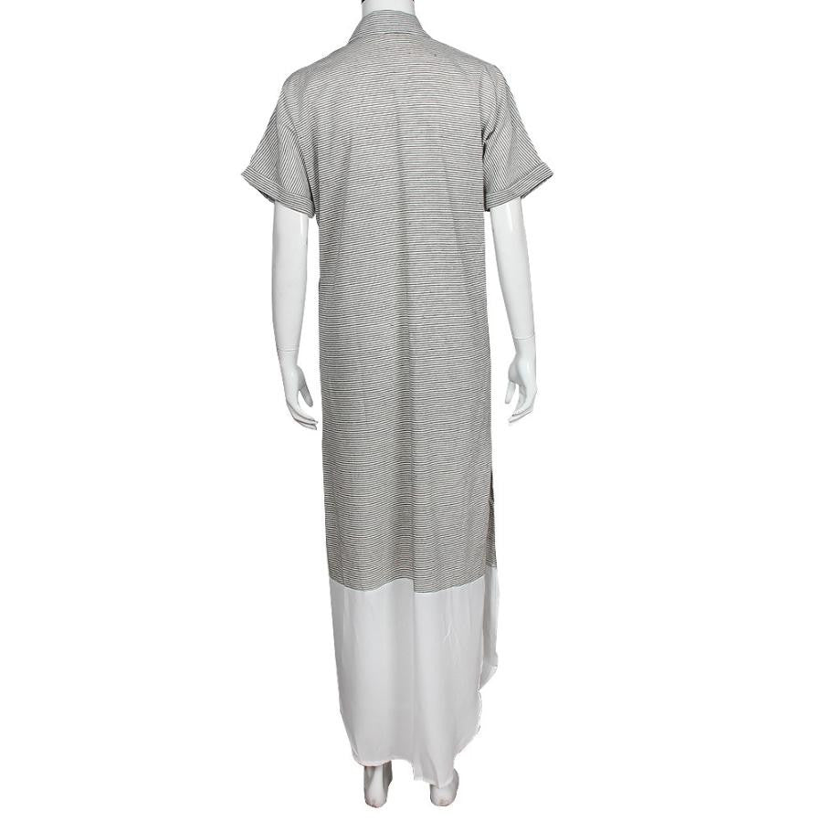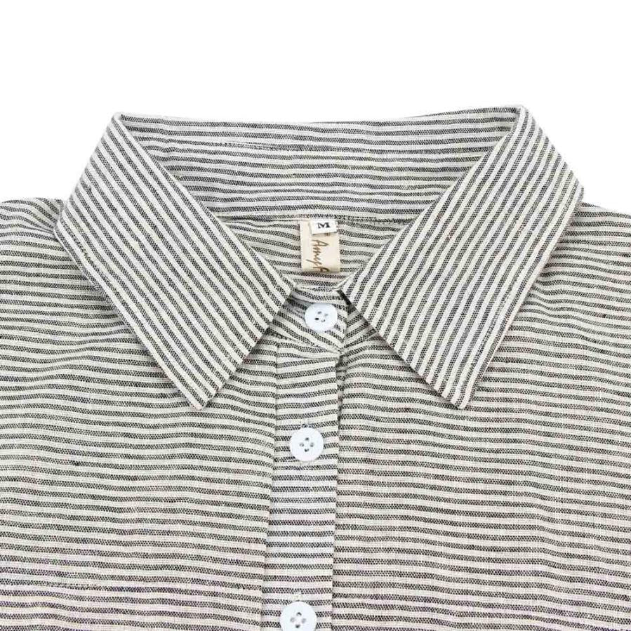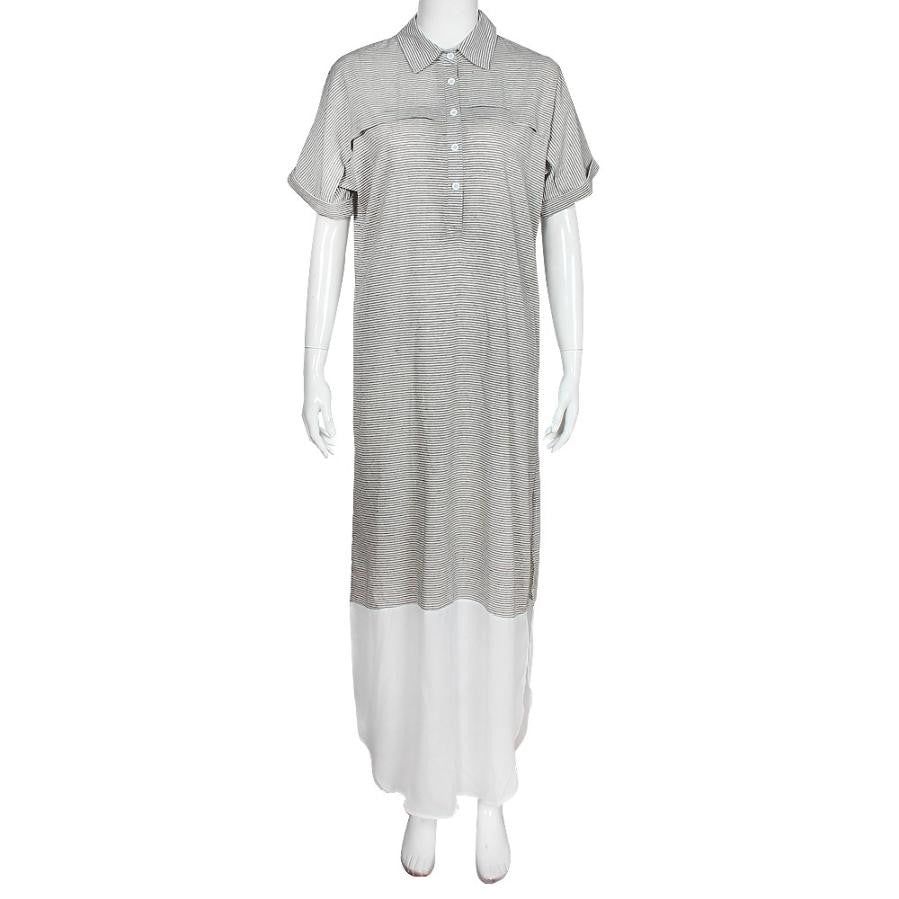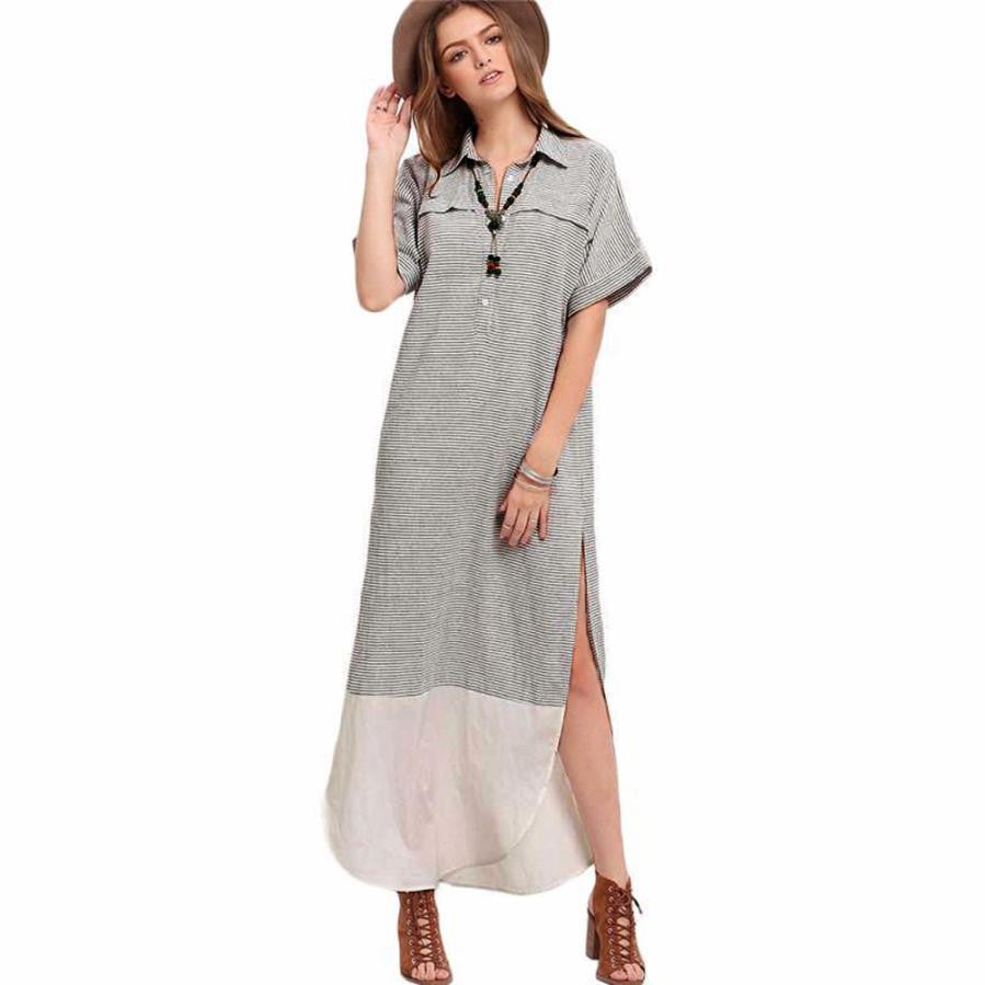 Cotton Maxi Dress Shirt Short Sleeve Spilt Sexy Striped Dress Turn-Down Collar Long Summer Dress Vestido Listrado#B729 SM6