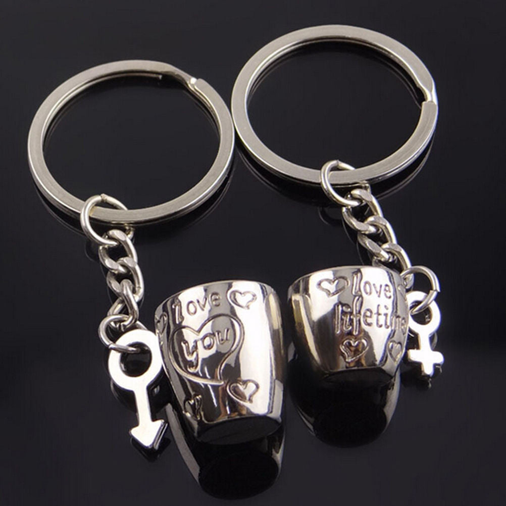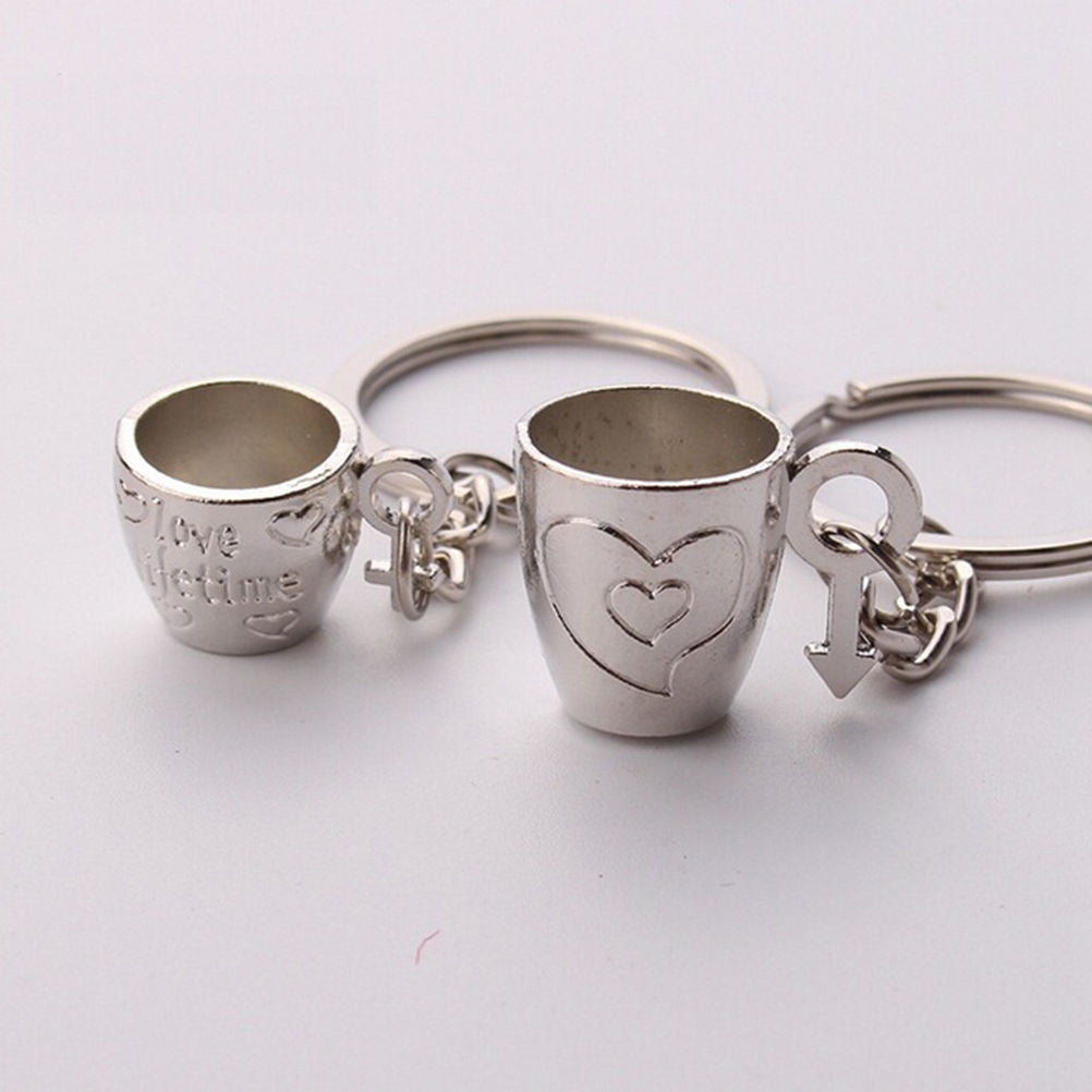 Creative 2Pcs Pair Romantic Couple Cups Keychain for Lovers Metal Keychain Wedding Gifts SM6