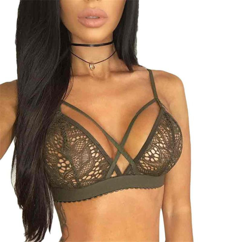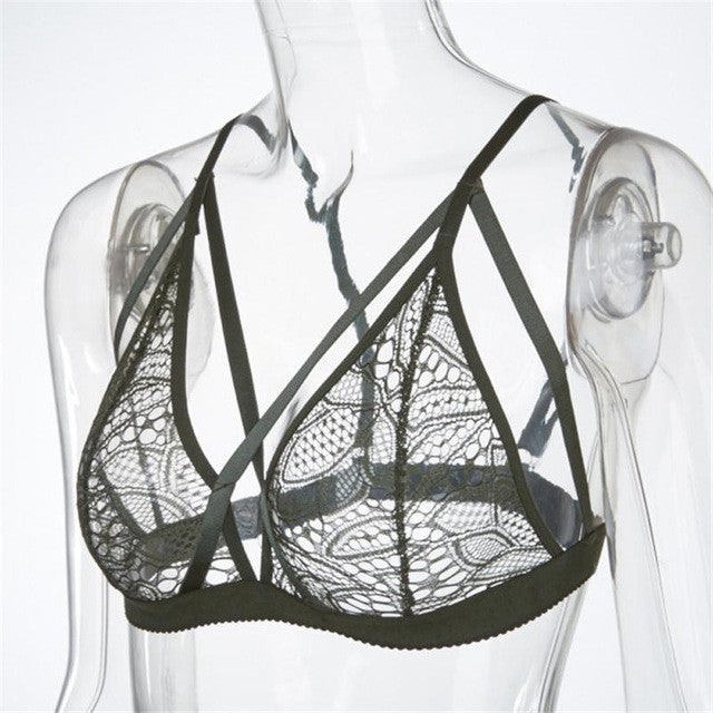 Crop Top Bra Sexy Lace Cross Bandage Hollow Out Lace Bralette Cropped Tops Lace Floral Sexy Tops Cropped Feminino#212 SM6
