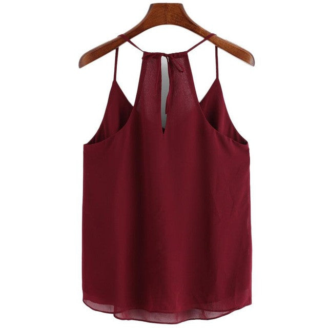 Crop Tops Women Chiffon Sling Style Sexy Sleeveless Tank Crop Vest haut femme Black Red Navy #63 SM6