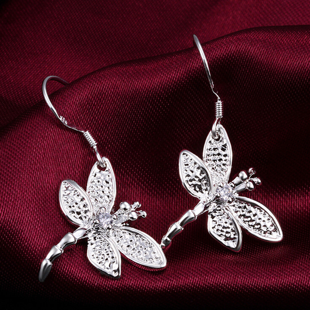 Crystal Dragonfly silver plated Earrings Jewelry trends exquisite beauty of high - quality Drop Earrings Women jewelry SM6