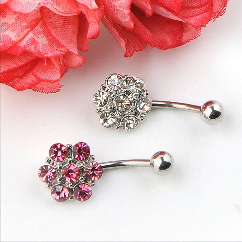 Crystal Flower Surgical Steel Barbell Piercing Belly Button Navel Ring Bar Body Piercing SM6