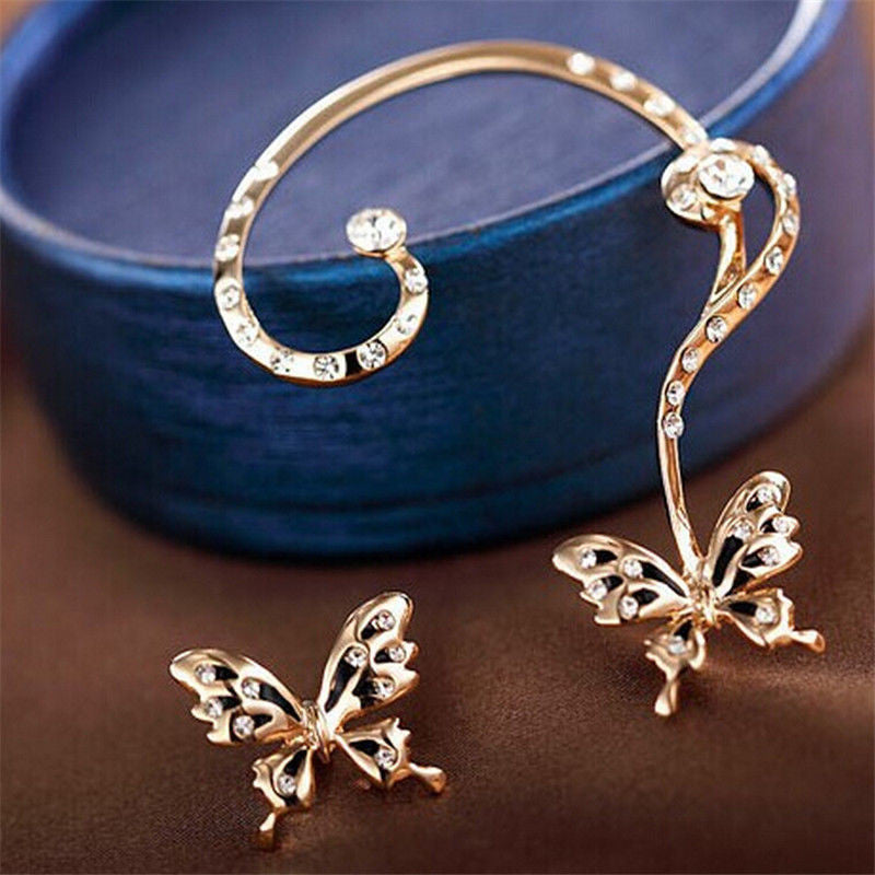 Crystal Rhinestone Butterfly Cuff Ear Clip On Earrings Wrap Women Jewelry Gift SM6
