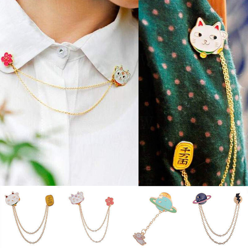 Cute Egg Cat Moon Rabbit Chain Brooch Badge Pin Jewelry Gift Women Girl Accessories S Collar brooch SM6