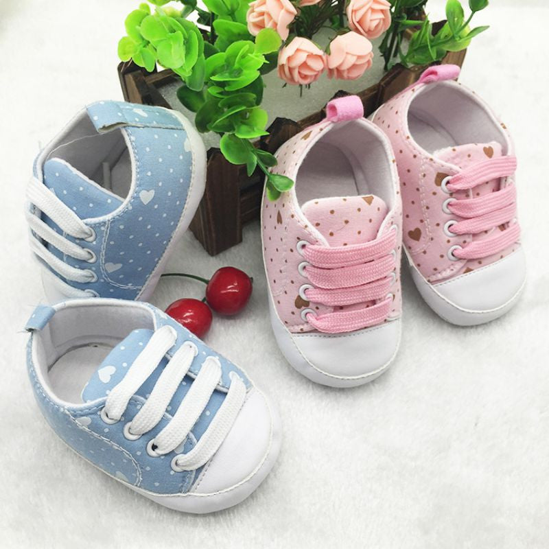 Cute Love Polka Dot Print Crib Shoes Boys Girls Laces Up Anti-Slip Sneaker SM6