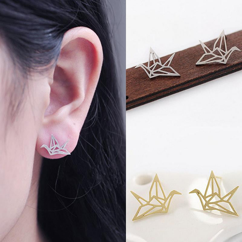 Cute Origami Crane Stud Earrings Lovely Hollowed Ear Studs Chic Birds Earrings Korean Pendientes Women Jewelry SM6