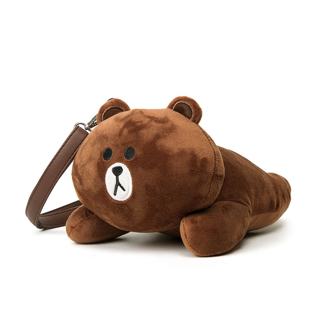 Cute Women Girls Crossbody Bag Kawaii Cartoon Rabbit Bear Bag Furry Doll Toy Shoulder Messenger Bag BrownWhite Mobile Phone Bag SM6