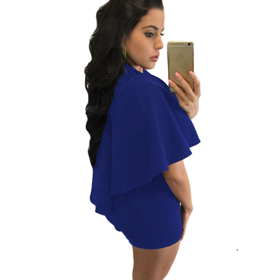 Daring Good Stretch Sexy Club Jumpsuits Royal Blue Short Jumpsuit Deep V Neck Playsuit Rompers For Wo SM6