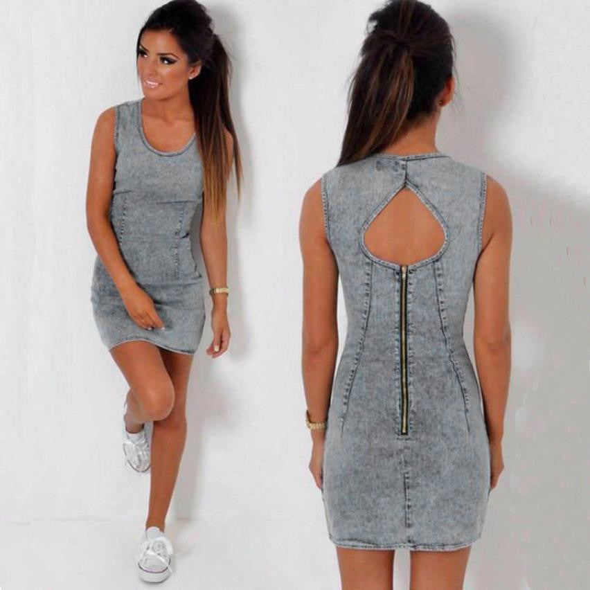 Denim Dress Off Shoulder Hollow Out Mini Dress Backless Woman Dress Summer Casual Vestido Jeans Vestidos Cortos#B725 SM6