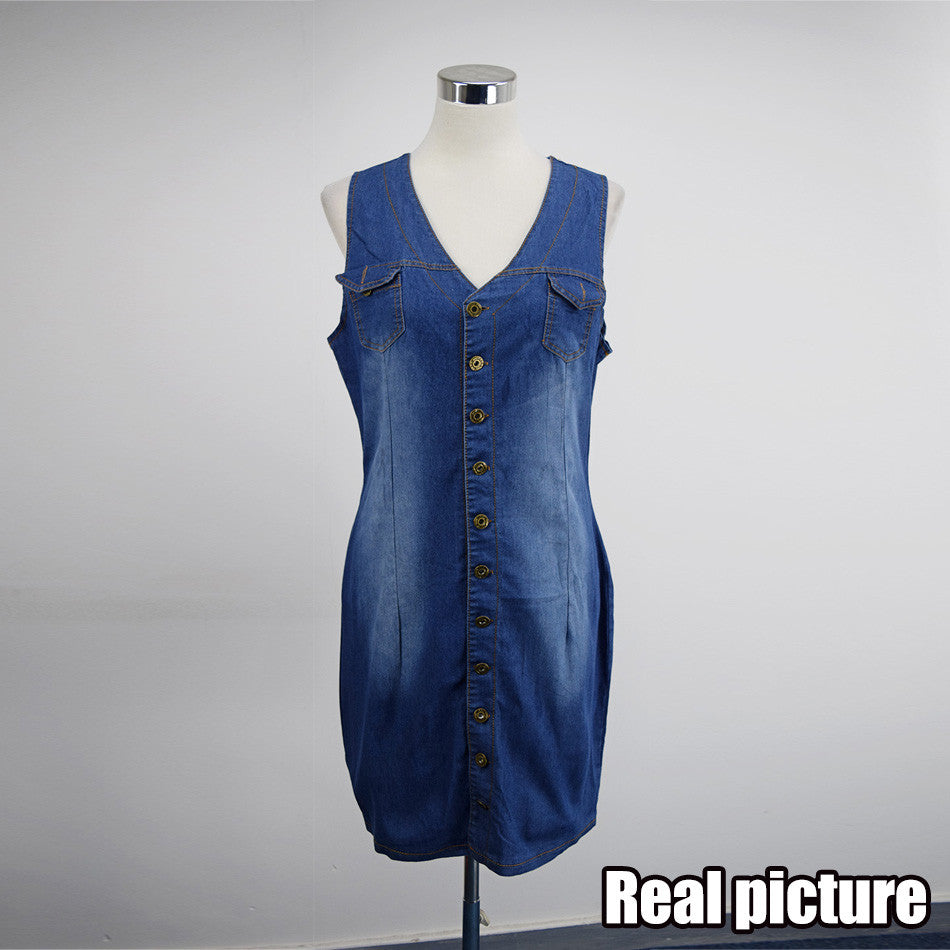 Denim Dress With Pockets Blue Short Bodycon Dress Sleeveless Mini Casual Tight Denim Sundress Clothes SM6