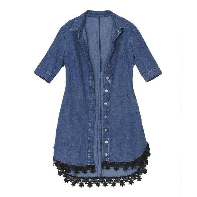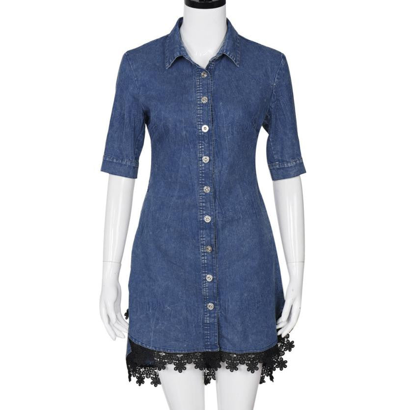 Denim Dresses Women Half Sleeve Lace Sexy Dress Casual Soft Short Dress Blue Vestido Jeans#C806 SM6