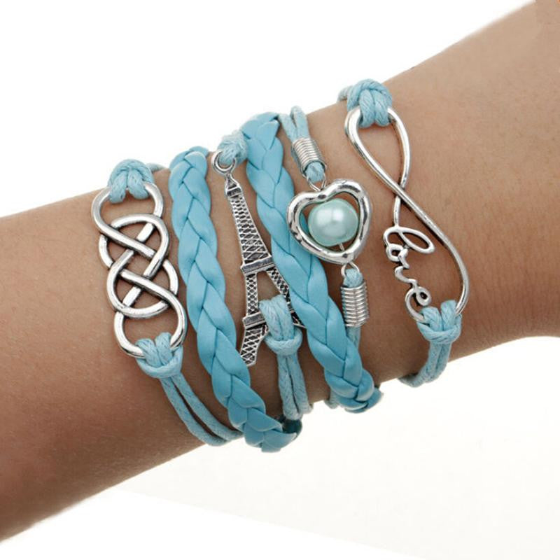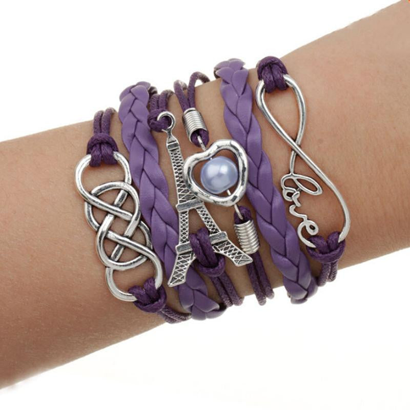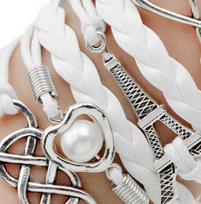 Factory Price Heart Eiffel Tower Bracelet Jewelry S PU Leather Pearl Double Infinite Multilayer Bracelets SM6