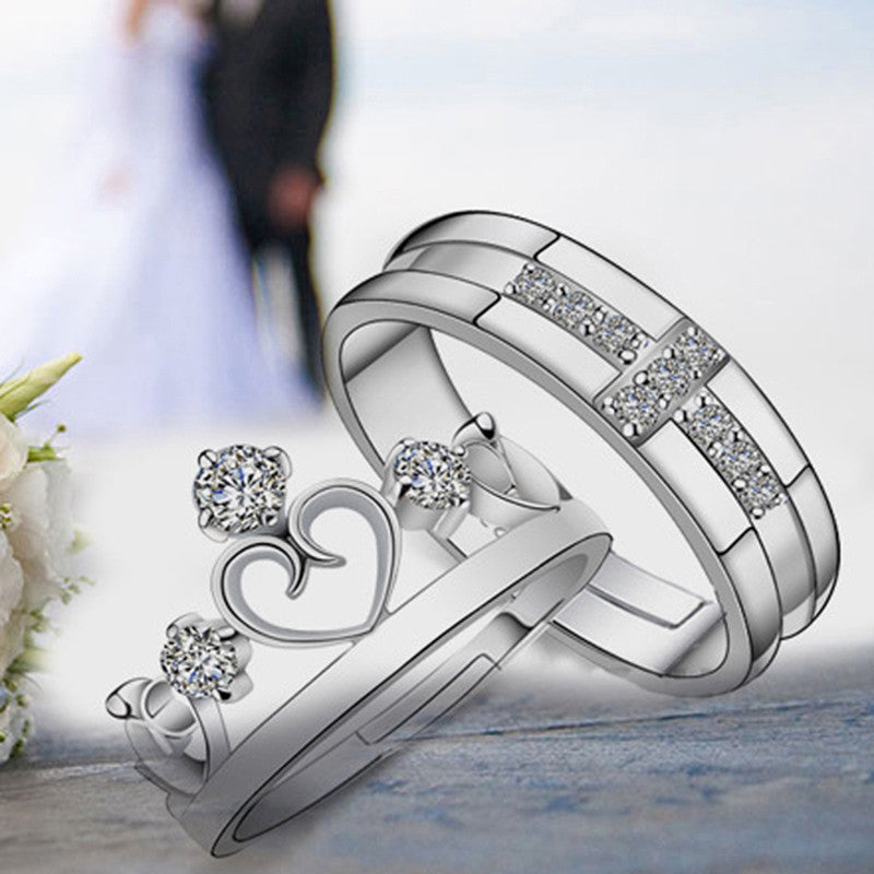 for Women Men =2pcs Sterling Silver Ring Jewelry Engagement Love Crown Cross Zircon Wedding Lovers Couple Rings SM6