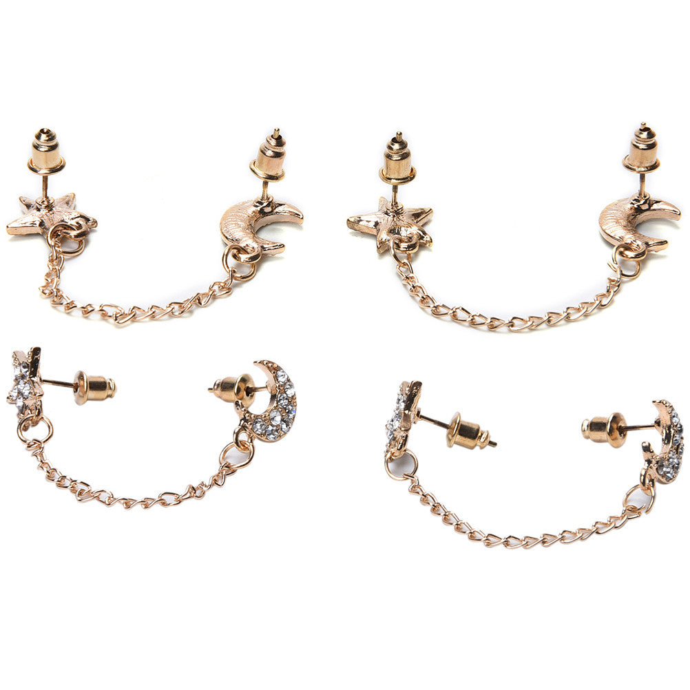 Gold plated Moon Star Crystal Rhinestone Stud Earrings SM6