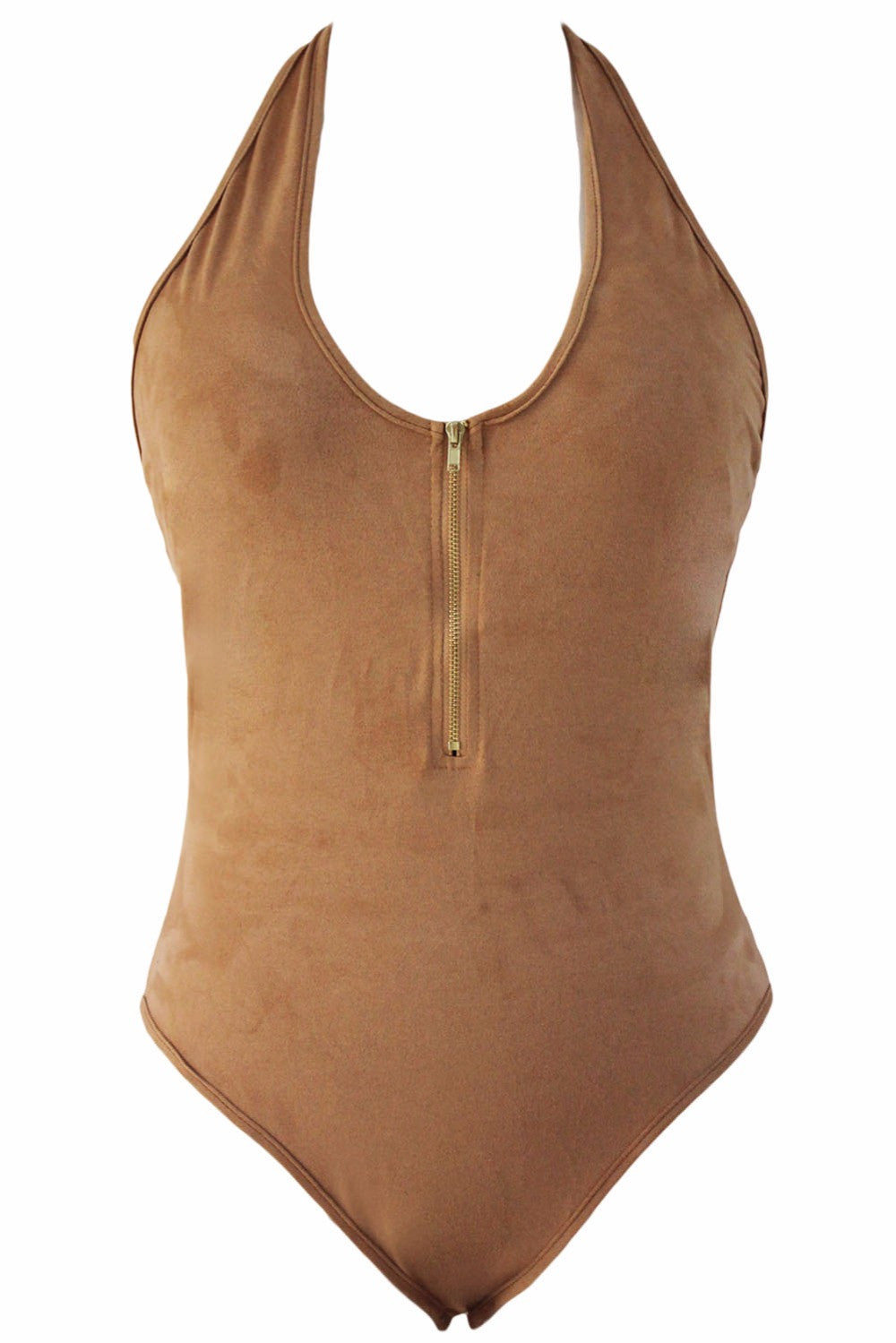 Good Elastic Beyonce Bodysuit Rompers Suede Halter Jumpsuit Black Sleeveless Sexy One Piece Suit Outfits SM6