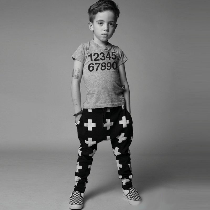 Kids Baby Unisex Cotton Cross Pattern Bottoms Harem Pants Boys Girls Punk Rock Trousers 2-6Years SM6