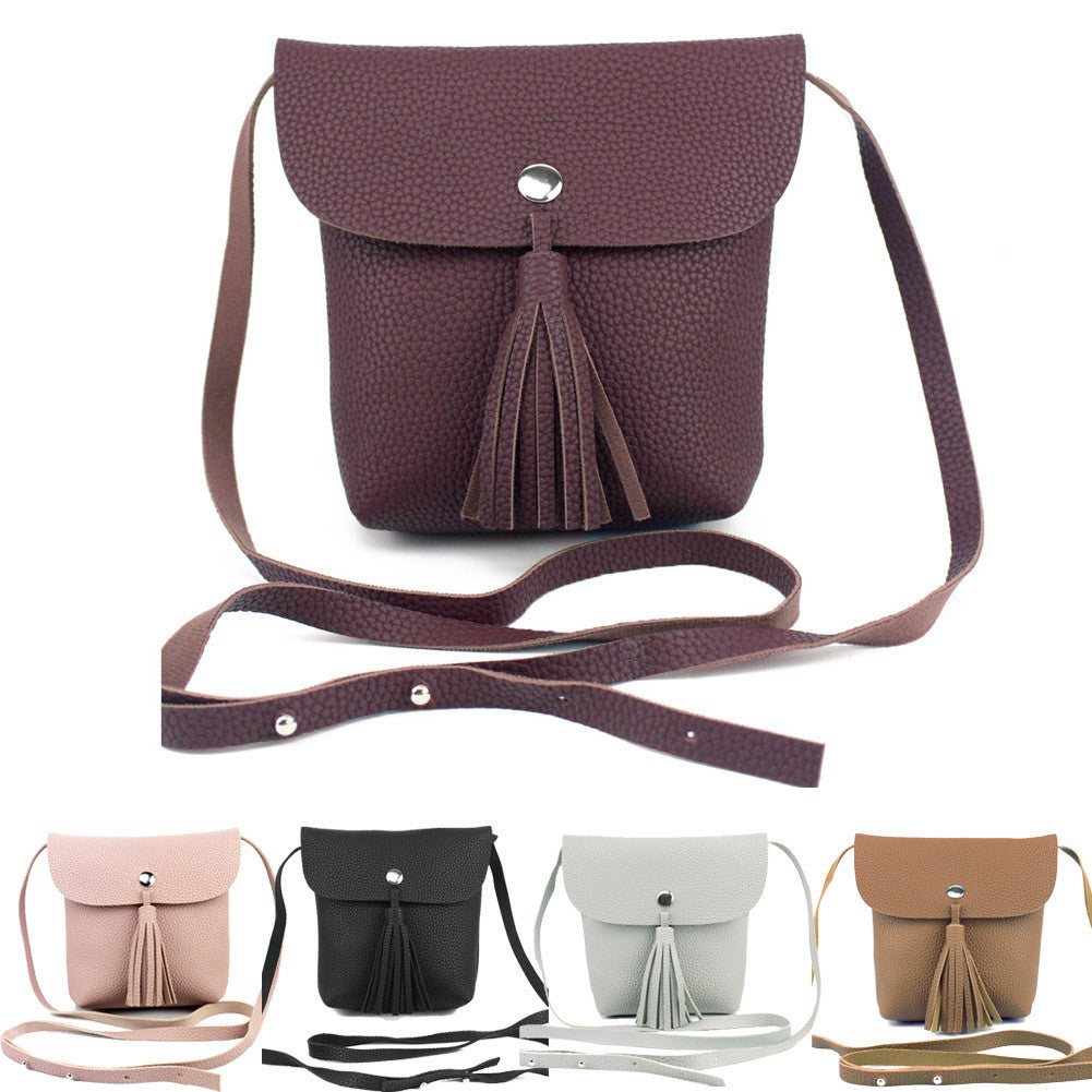 Korean Retro Women Shoulder Bag PU Leather Flap Tassel Bag Pink Stud Casual Mini Crossbody Bag Girl Phone Sling Bag SM6